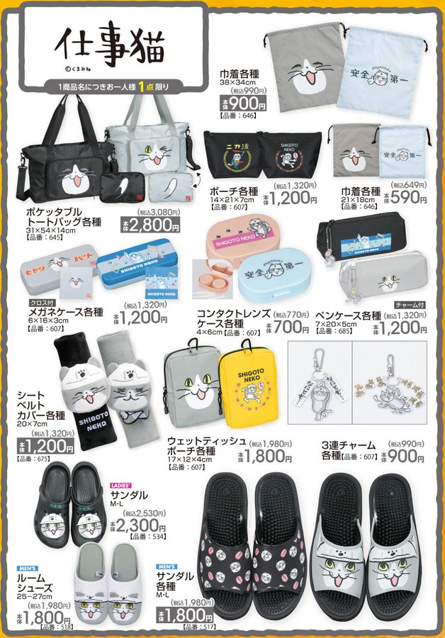 ・Sale of “Work Cat” goods (items released in line with February 22 “Cat Day”)