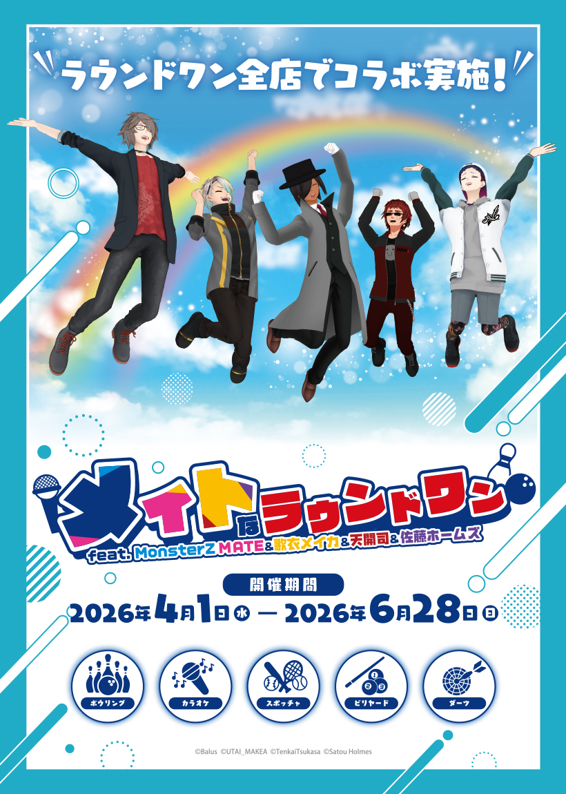 메이트나 라운드원 feat.MonsterZ MATE&카에이 메이카&텐카이 츠카사&사토 홈즈 콜라보 캠페인 2026