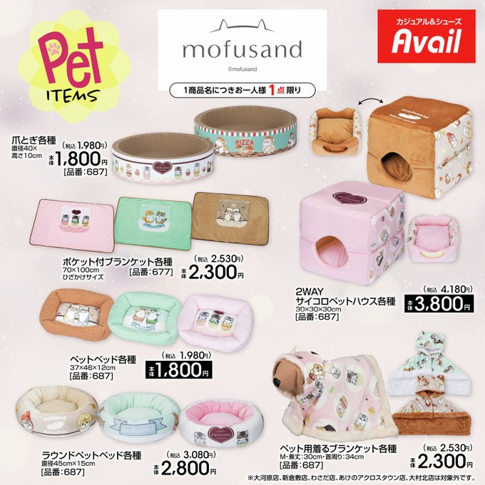 ตั้งแต่วันที่ 2025/11/01 (Sat) เป็นต้นไป Avail จะเริ่มจำหน่ายไลน์สินค้าสำหรับสัตว์เลี้ยงในธีม “mofusand” แบบจำนวนจำกัด เฉพาะบางสาขาเท่านั้น