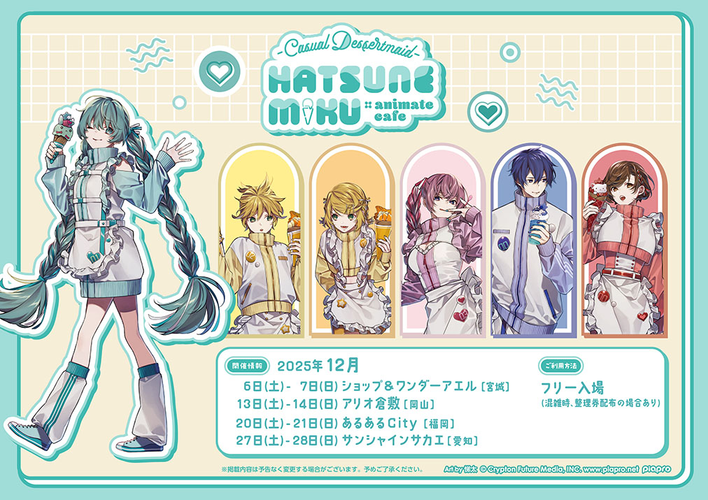 Hatsune Miku ฮัตสึเนะ มิกุ × Animate Cafe -Casual Dessertmaid- คิทเช่นคาร์ทัวร์ ประกาศจัดแล้ว! 2025