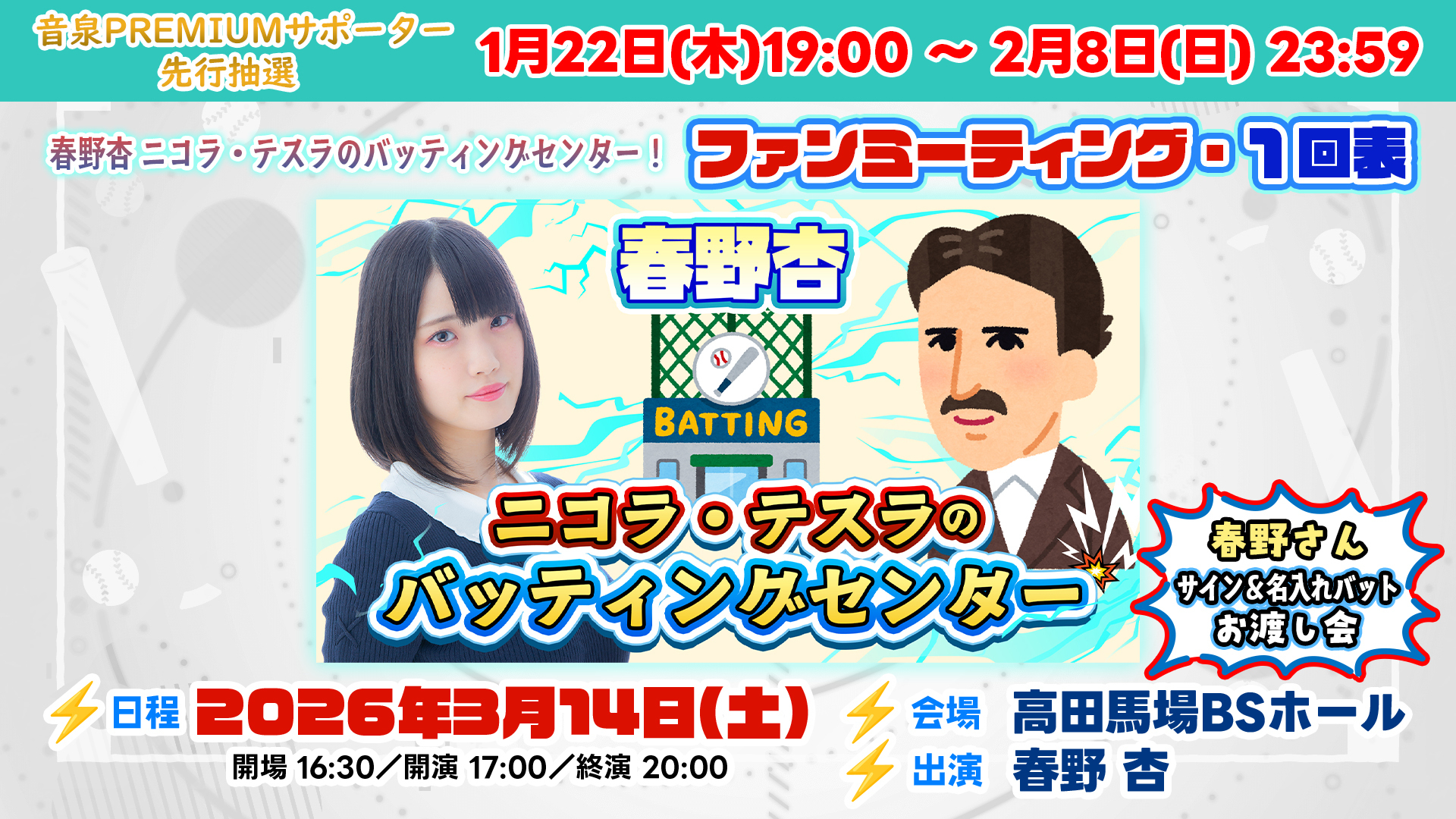「春野杏 尼古拉·特斯拉的棒球打击中心!」粉丝见面会 第一局 2026