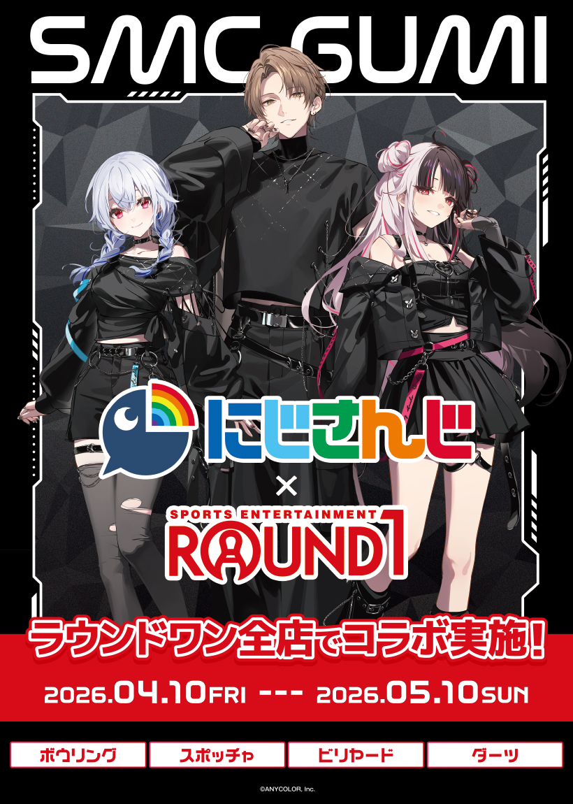 Subscribe Date 4 月 10 2026 - 5 月 10 2026 Time All Day Cost Free Area (1)北海道地区,(2)东北地区,(3)关东地区,(4)中部地区,(5)关西地区,(6)中国地区,(7)四国地区,(8)九州、冲绳地区 彩虹社Nijisanji SMC组 × ROUND1 联动活动 2026 举办期间 2026年4月10日 10:00~ 会场 ROUND1 对象门店 内容 ・彩虹社 SMC组与 ROUND1 的联动活动 ・有联动周边贩售 ・有扭蛋玩具贩售 ・有立牌展示 ・有联动菜单提供 ・有联动套餐活动 ・使用联动套餐可获赠「B4视觉垫板」 ・实施保龄球分数登记活动 ・实施 Spo-cha AR 数字集章拉力活动 ・达成奖励为「原创透明杯垫」 官方网站 :点击这里 在此处查看活动日历 ↑ (预订酒店时点击上图)↑ 在日本预订酒店时,通过日本本地的网站会比较便宜!!其中Rakuten Travel乐天旅游最便宜!!要选择适合自己的语言,只需切换到网页版, 然后在页面顶部找到language语言即可切换。 ↑(想以低价购买限定手办模型?请点击上方图片!)↑ 日本最大的手办专卖商店「AmiAmi」! Share this event + Add to Google Calendar + iCal / Outlook export