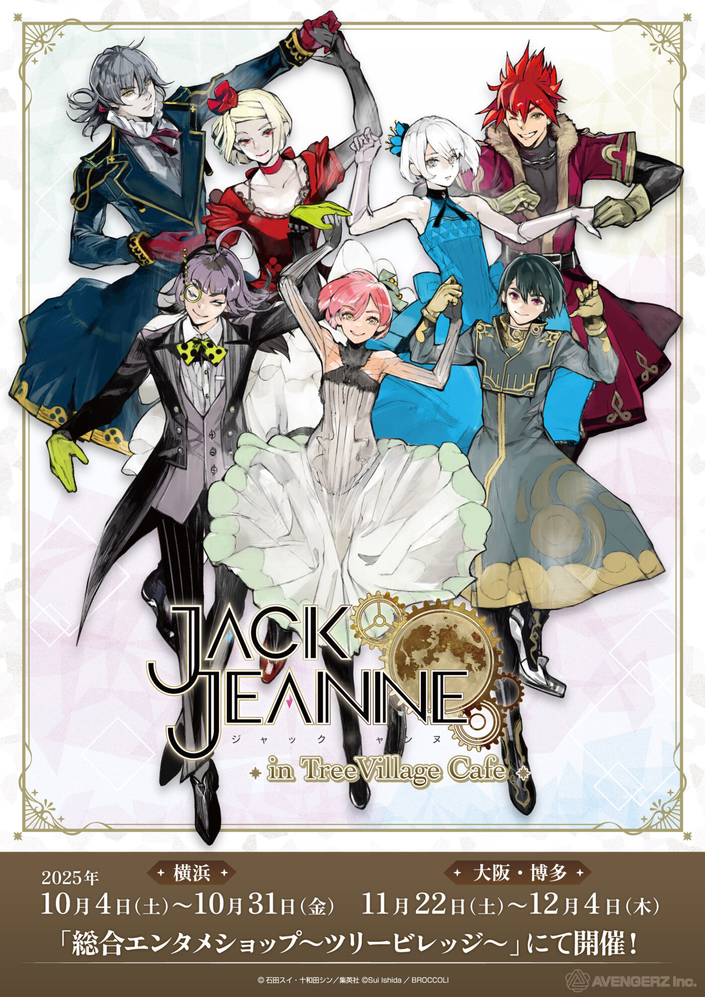 🪄 JACKJEANNE in Tree Village Cafe 總整理 📅 舉辦・橫濱:2025/10/04(週六)~10/31(週五)・大阪・博多:2025/11/22(週六)~12/04(週四) 📍 會場・橫濱:Yokohama VIVRE 6F「Tree Village 橫濱店」・大阪:HEP FIVE 梅田 8F Cross Store 內「Tree Village 大阪店」・博多:Canal City OPA 博多 B1F Cross Store 內「Tree Village 博多店」 🕒 營業時間・橫濱 平日 SHOP/CAFE 11:00–21:00(L.O 20:30)|週末及國定假日 SHOP 10:00–21:00/CAFE 10:00–21:00(L.O 20:30)・大阪 SHOP 11:00–21:00/CAFE 11:00–20:00(L.O 20:00)※內用至 20:30・博多 SHOP 10:00–21:00/CAFE 11:00–20:00(L.O 19:30) 🛍️ 商品特典・每筆結帳每滿 3,300 日圓(含稅)贈原創明信片隨機 1 張(共 8 款)・壅擠時可能限購/禁止轉售 🍛 咖啡廳特典・每筆點單至多可點 5 品
